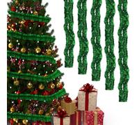 WedDecor 9cm Christmas Tinsel Garland for Christmas Tree Decorations, 2 Metre Thin Xmas Garland for Indoor and Outdoor Party Xmas Hanging Decorations, Christmas Events & Supplies, Green, Pack of 5