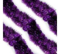 WedDecor 9cm Xmas Tinsel Garland for Xmas Tree Decorations, 2 Metre Thin Xmas Tinsel Garland for Indoor and Outdoor Party Xmas Hanging Decorations, Xmas Events, Party Supplies, Purple