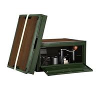 Navaris Camping Storage Box, Green, Set of 2-35L Foldable Bin with Pine Wood Lid - Collapsible Folding Crate - Easy to Disassemble Plastic Storage Crates - Stackable with Wheels