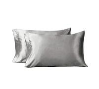 Elina Home Two-Pack Satin 20"x 40" Luxury Smooth Pillowcase Set for Hair Polyester Cool and Easy to Wash with Envelope Closure, Silver King Size
