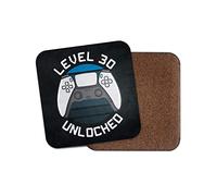Square Single Coaster - Happy Birthday Level 30 Unlocked Gamer Gaming Controller Thirty 30th Teen Boys Men Gift #77816