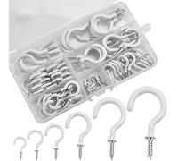 AFASOES 85 Pcs Screw-in Ceiling Hooks Cup Hooks Screw Hooks Multi-Size Metal Ceiling Hooks Vinyl Coated Ceiling Screw Hooks Heavy Duty Screw in Hooks for Hanging Plants, Cups, Utensil, 6 Sizes (White)