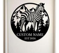 Houdoum Personalized Custom Zebra Metal Wall Art, Personalized Animal Lover Name Sign, Africa Wild Animal Decoration (Zebra I)