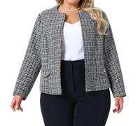 Agnes Orinda Plus Size Tweed Blazer for Women Collarless Long Sleeve Open Front Work Business Jacket Suits Casual 2025 Black 4X