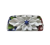 IguaTu America Patriotic Flower Hard Shell Leather Pencil Case & Makeup Organizer - Waterproof Zippered Cosmetic Brush Bag, Compact Travel Pen Pouch for School, Office Gift
