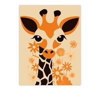 Artery8 Wall Art Print Cute Baby Giraffe With Flowers Orange Graphic Artwork Zoo Animal Floral Kids Bedroom Painting Art Framed | Size: W12" x H16" Artery8 Orange W12" x H16"