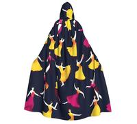 YQxwJL Ballroom Dance Small Pattern print Halloween Hooded Robe Cloak for Adult Men Women Wizard Vampire Knight Fancy Cape Costume