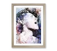 Billie Holiday In Abstract Classic Painting Framed Wall Art Print, Ready to Hang Picture for Living Room Bedroom Home Office Décor, Walnut A2 (64 x 46 cm)