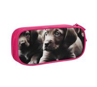 BNVSADC Cute Puppies Dog Printed Pencil Case Large Pen Bag Cute Pencil Box Pouch Office School Stationery Organizer for Girls Boys, Pink
