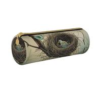BNVSADC Outdoor Bird Home Printed Round Pencil Case Leather Pencil Pouch Cute Stationery Pencil Pen Bag for School Office Travel