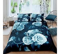 Meiju 2/3 Piece Bedding Duvet Cover Set for Single Double King Size, 3D Flower Print Bedding Set Soft Microfibre Duvet Sets With Zipper Quilt Cover + Pillowcases (Dark blue rose,200x200cm)