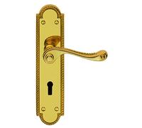 Victorian Brass Scroll Lever Lock Door Handles 155 x 40mm- Finish - Polished Brass (PB)