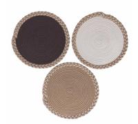 Villa d'Este Home Tivoli Set of 3 Polycotton Placemats, Jute Weave Frame, Diameter 38 x 1.5 cm, Shades of Chocolate