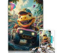 Dinosaur Driving A Car Jigsaw Puzzles for Adults 1000 Piece,Challenging Game And Family Play with Fully Interlocking Randomly Shaped Pieces 38x26cm