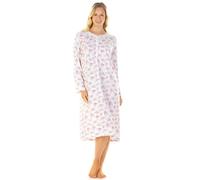 La Marquise Women's Elizabeth Floral Cloudknit Long Sleeve Button Up Nightdress (Pink Floral, M/L UK 14-16 EU 42-44)
