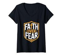Womens Faith Over Fear Christian Strength and Courage V-Neck T-Shirt