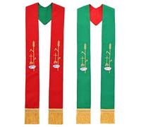 FAD-4U Church Clergy Stole Choir Priest Reversible Embroidery Tassel Stole (Red Green)
