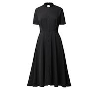 FAD-4U Church Dress for Women Priest Short Sleeve Button Decor A Line Clergy Dress with Standing Collar Black