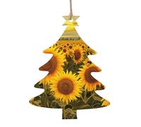 AUBKFELD Farm sunflowers Printed Wooden Christmas Tree-Shape Christmas Decorations 6 PCS Christmas Tree Decorations Holiday Hanging Decor