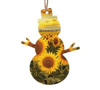 AUBKFELD Farm sunflowers Printed Wooden Snowman-Shape Christmas Decorations 4 PCS Christmas Tree Decorations Holiday Hanging Decor