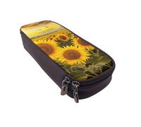 BNVSADC Farm Sunflowers Printed Leather Pencil Pen Case & Makeup Bag - Stylish Pencil Bag Stationery Organizer Pouch for School Office Travel
