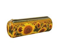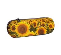 JKSEEPYN Farm Sunflowers Printed Leather Pencil Case for Students Girls Boys - Round Stationery Organizer Makeup Pouch for School Office Travel