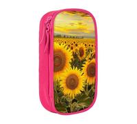 BNVSADC Farm Sunflowers Printed Pencil Case for Girls Boys, Large Capacity Pencil Pouch Cute Pencil Box Adult Makeup Bag with 2 Compartments, Pink