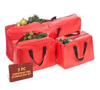 Festive Fix Christmas Tree Bag 3pc Storage Bag Set for Tree, Decorations & Lights, Multipurpose Heavy-Duty Waterproof Material with Reinforced Handles & Zippers - Jolly Red 3pc Set