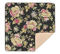 Baroque Style Vintage Flowers Large Non-Slip Baby Play Mat for Indoor Outdoor Waterproof Baby Play Tummy Time Mat for Baby Kids Toddlers Infants, 50'' x 50''