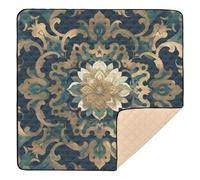Blue and Gold Baroque Pattern Soft Thick Baby Activity Play Mat for Indoor Outdoor Comfortable Padded Play Mat for Baby Kids Toddlers Infants, 50'' x 50''