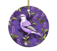 Bird in Purple Lavender Floral Flowers Print Christmas Tree Ceramic Round Hanging Ornaments,Xmas Decoration DIY Keepsake 2025