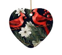 Christmas Winter Red Bird Floral Ceramic Christmas Tree Ornament, Double-Sided Printed Heart Shape Porcelain Hanging Decoration, Elegant Holiday Keepsake for Xmas Tree Home Office Gift Exchange