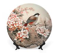 Gokays Decorative Plates, Chinese Bird & Flower Painting Ceramic Dinner Plate Home Wobble-Plate with Display Stand, Wall Hanging Decor for Living Dining Room Kitchen Household 20 CM