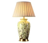 GLETSF Table Lamp Table Lamps For Living Room Ceramic Table Lamp Chinese Classic Nightstand Lamp Hand Painted Floral And Bird Glazed With Fabric Shade And Brass Base Bedside Lam-Remote Control