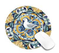 Vintage Floral Square Desk Mouse Pad, Blue Yellow Ceramic Bird Design Stitched Edge Mousepad, Rubber Non-Slip Washable Gaming Mouse Pad for Home and Office Computer, Laptop Round 8x8 Inch