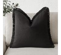 Foindtower Decorative Linen Fringe Throw Pillow Covers Cozy Boho Farmhouse Cushion Cover with Tassels Soft Accent Pillowcase for Chair Sofa Bed Living Room Home Decor, 18×18 Inch, 1PC, Black, FPCS-30