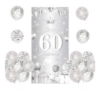 Diamond Wedding Decorations, 60th Wedding Anniversary Decorations Happy 60th Anniversary Balloons Metallic Silver White Balloons Banner 60 Diamond Wedding Cake Topper