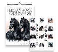 Friesian Horse Calendar 2026, A4 Wall Mount, Black Horse Monthly Planner, 21 x 29.7 cm, UK & US Holidays, Horse Calendars, Equestrian Calendar, Horse Gifts, Black Horses, Handmade