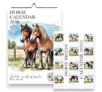 Horse Calendar 2026, A4 Size Wall Mount, Monthly Equestrian Design with UK & US Holidays, 21 x 29.7 cm, Horse Breeds, Equestrian Calendar, Horses 2026, Handmade, Horse Gifts