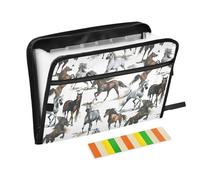 Watercolor Horses File Folders,Plastic Folders with 13 Pockets,Expandable File Folder for Documents School Students Office,Aesthetic Folder with Labels A4 Letter Size