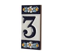 House Tile Numbers, Spanish Ceramic Numbers & Letters Tiles, Church Window Design, Tile Size: 7.5cm x 3.5cm, 3 to 10 Tile Frames (Number 2)