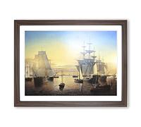 Fitz Hugh Lane Ships in Boston Harbour Classic Painting Framed Wall Art Print, Ready to Hang Picture for Living Room Bedroom Home Office Décor, Walnut A3 (46 x 34 cm)