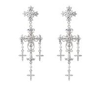Yjcnelcr 1 Pair Crystal Diamonds Four-pointed Star Earrings Crossed Star Earrings Women Handmade Lightweight Fashion