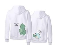 KMCOJIA Lovely Dinosaur Couple Hoodie,Long Sleeve Thick His & Hers Pullover Hooded Sweatshirt with Pocket(Pack of 1) Blue-Black-L
