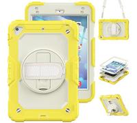 iPad mini4/5 Generation Case with Screen Protector Pencil Holder Kickstand Hand Strap 360 Rotating Hand Strap Stand Durable Protective Case (Light Colour)
