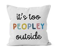 HIWX Funny It's Too Peopley Outside Decorative Pillowcase Throw Pillow Cover, Motivational Funny Introvert Humor for Sofa Bed Room Home Bohemia Decor 18 x 18 Inch Pillow Case