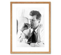 Artery8 President John Kennedy Smoking Cigar JFK Black & White Vintage Photograph Artwork Framed Wall Art Print 12X16 Inch in Brown Artery8 Brown
