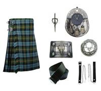 Men's Scottish Heritage Kilt Set Anderson Modern kilt Stag Head Sporran, Chain, Belt, Buckle, Brooch & Pin (30" Inches Naval Waist)