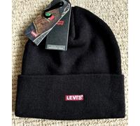 LEVI'S Black Cuff BEANIE RED LOGO Hat Toque UNISEX MADE IN ITALY