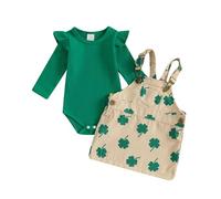 Xeadoffubio Newborn Baby Girl St Patricks Day Outfit Baby Girls Irish Day Outfits Long Sleeve Romper Suspender Skirt and Headband Set My First St Patricks Day Outfit (Green White, 12-18 Months)